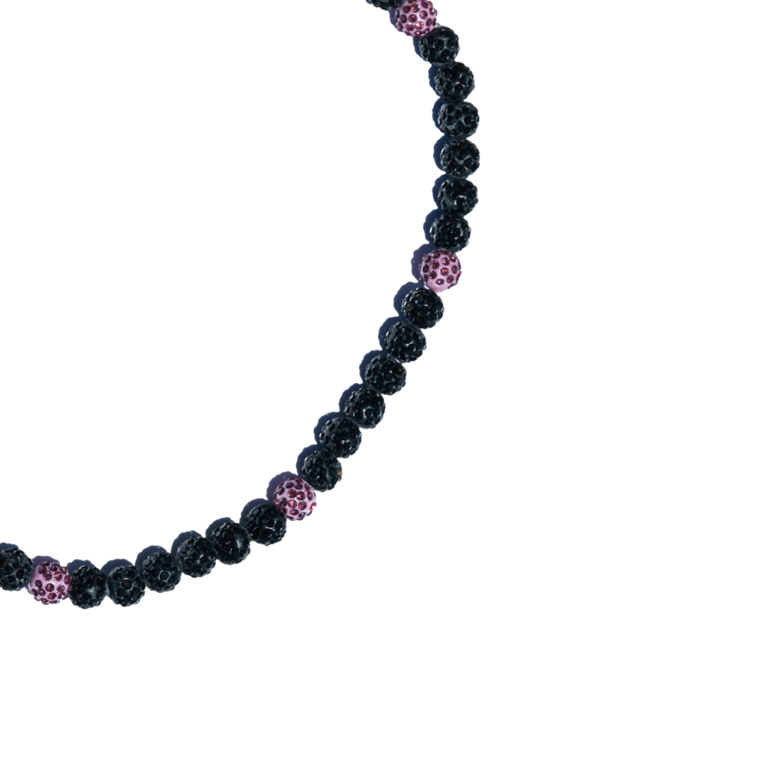 Lavender Haze Iced Out Baseball Bead Necklace | Black & Purple